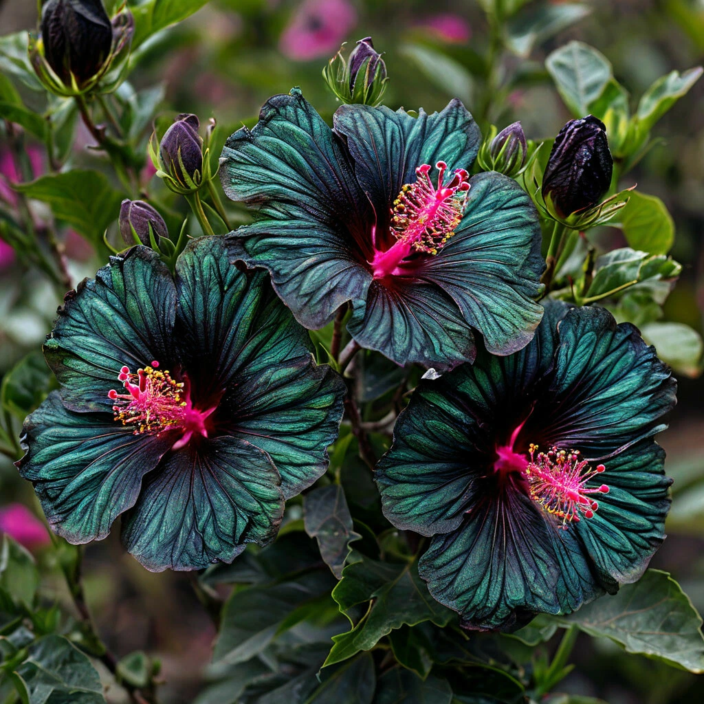 Гибискус «Пикок Плюм» — это настоящее чудо природы, которое приковывает взгляды своей необычной красотой. Представьте: крупные, зелёные, почти изумрудные цветы, словно драгоценные камни, искусно украшенные нежными розовыми акцентами, создающими эффект мерцания и переливов. Этот гибискус создан для тех, кто ценит оригинальность и стремится создать в своём саду атмосферу волшебства и элегантности. Его красота завораживает и дарит ощущение прикосновения к чему-то особенному.
